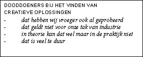 - Kritiek (zie verboden uitspraken in kader) is niet toegestaan; het aantal ideeën is in dit stadium belangrijker dan de kwaliteit.