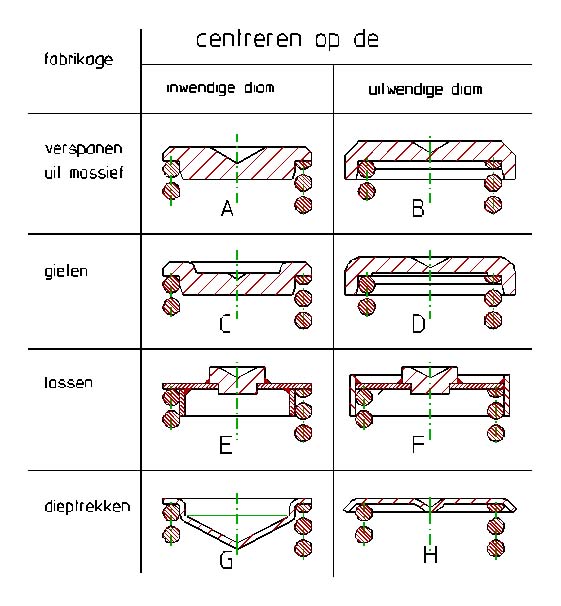 In dit voorbeeld komt de oplossing G (dieptrekken, uitwendige centrering) duidelijk als beste naar voren.