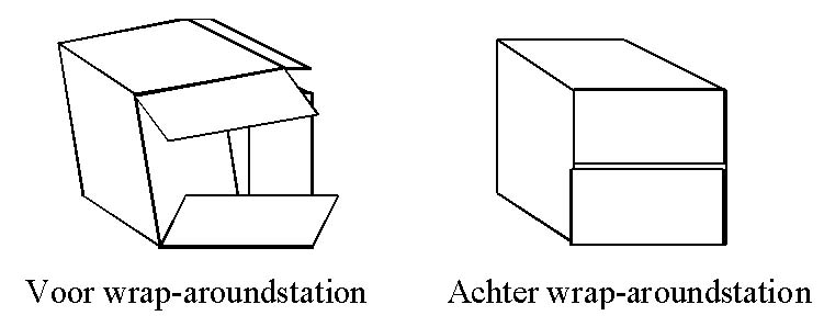 Figuur 5.3 De doos voor en na het "wrap-around" station