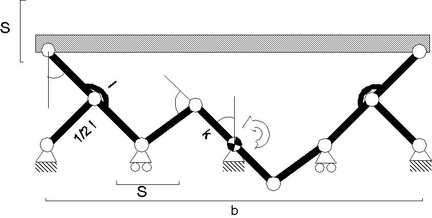 vierstangen mechanismen. Hierbij dient te worden bedacht dat het hier alleen maar één schematische voorstelling betreft van een mogelijke uitvoering van een dergelijke beweging. Zie figuur